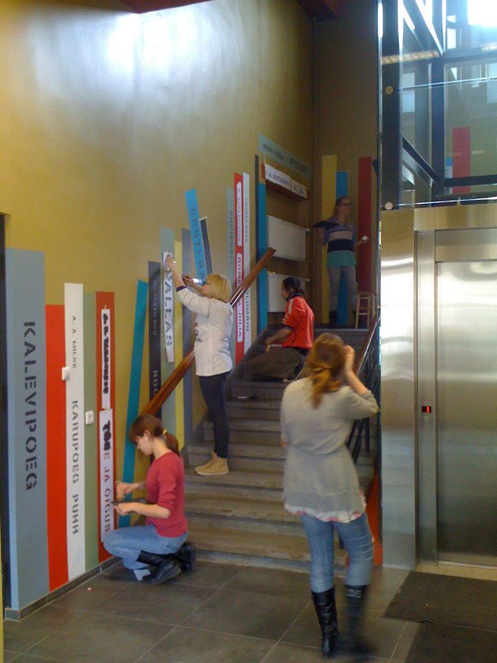 Linnaraamatukogu, olles juba sajandi jooksul teeninud linna elanikke ja pakkunud rikkalikku kultuuripärandit, vääris tähistamist erilisel moel. Meile, Tartu Kõrgema Kunstikooli esimese kursuse õpilastele, anti võimalus teostada seinamaal, mis kaunistaks raamatukogu seinu ja rõõmustaks külastajaid.