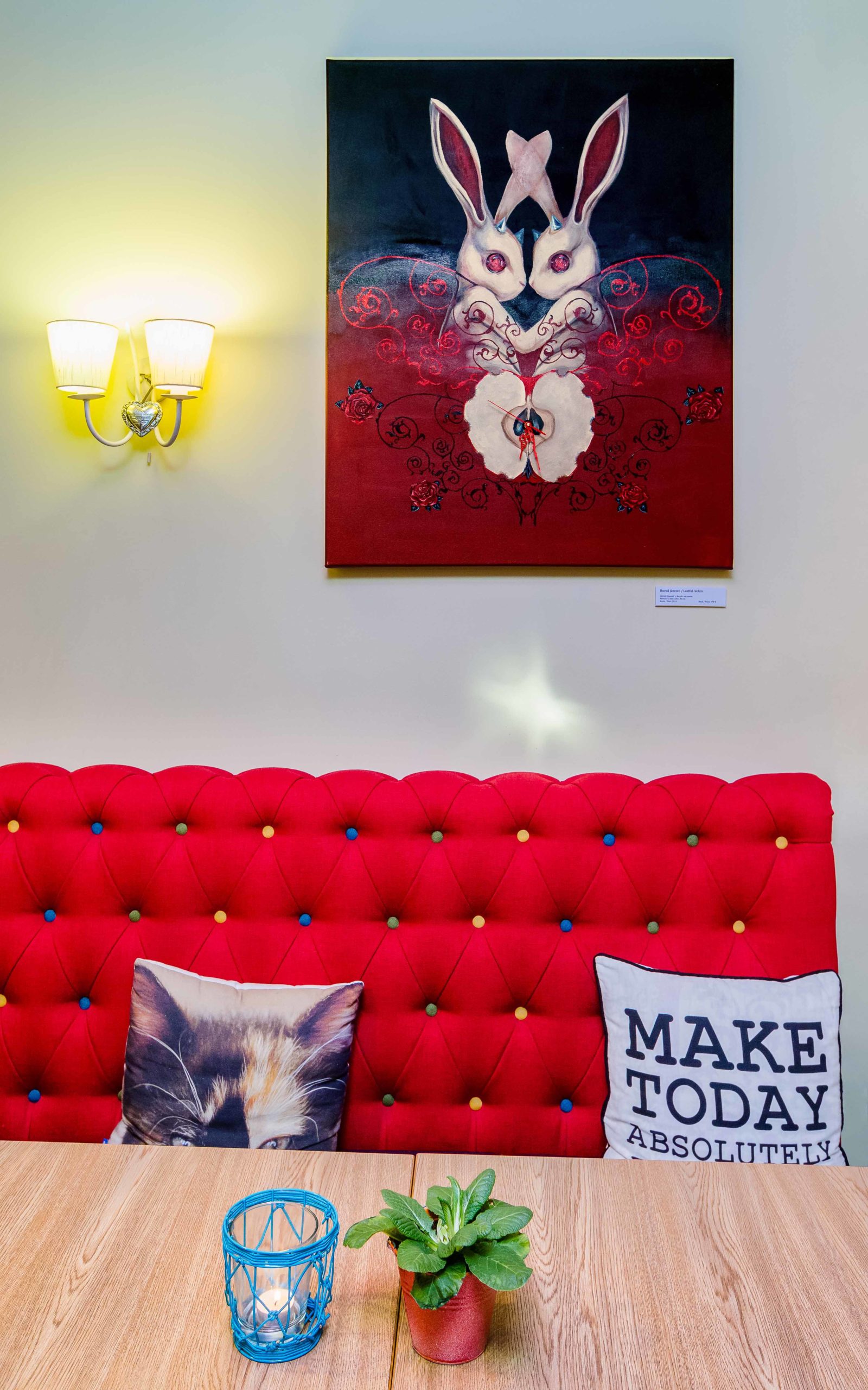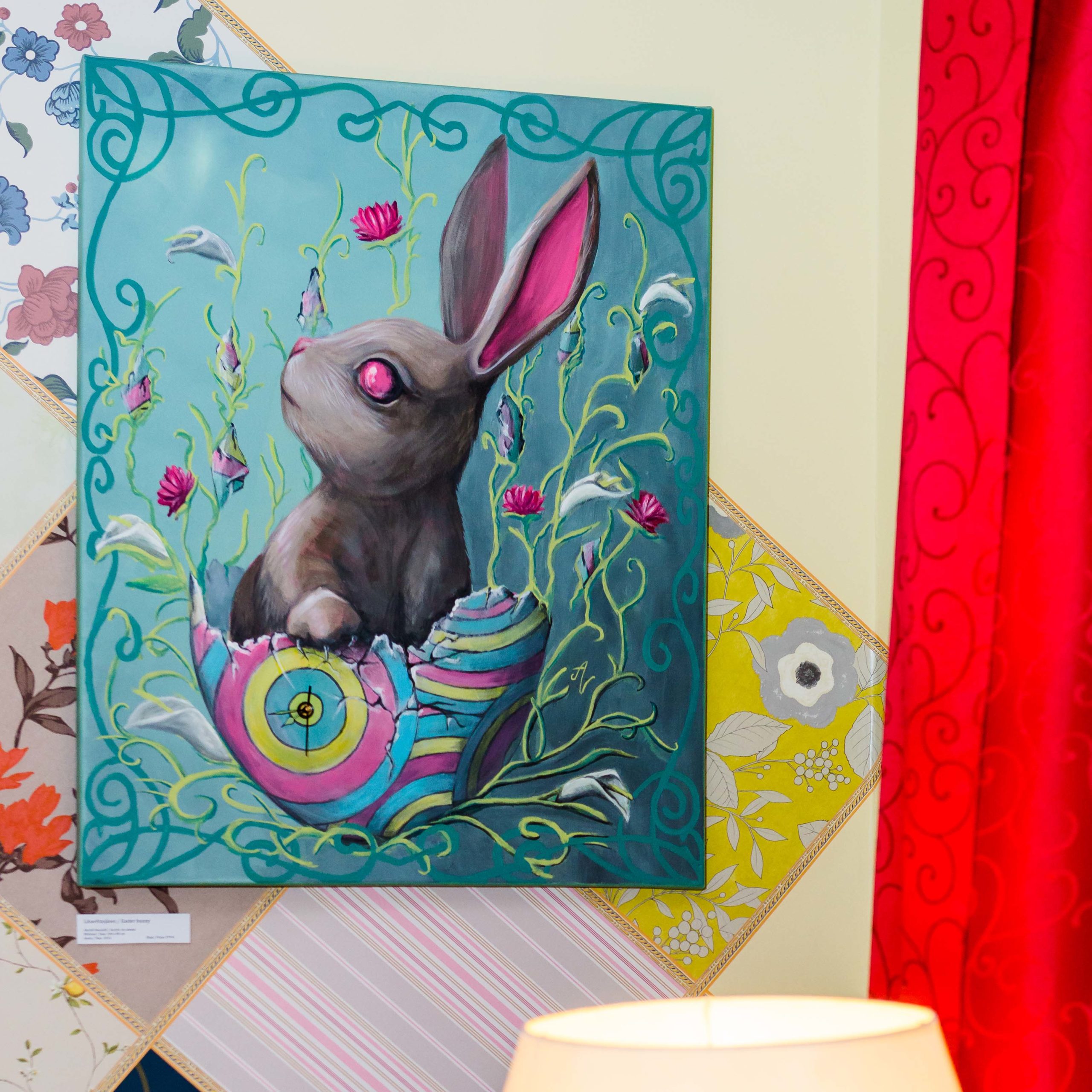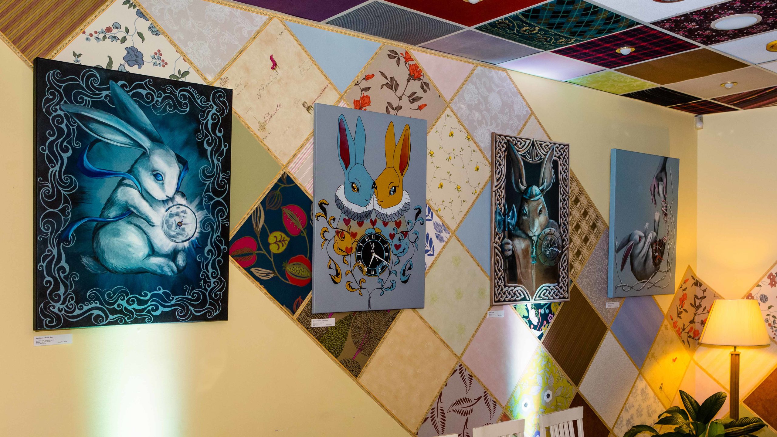 Lewis Carolli muinasjutus „Alice imedemaal“ pidasid tegelased igavesti pöörast teeõhtut. Alisa Vasina loodud muinasjutulised jäneste maalid ilmuvad Kohvik Sõbrad seintele, et pidada pöörast teeõhtut. Jänesed on pöörased, neil on erinevad kuvandid, koguni vastandlikud – jänes võib olla armas ja hirmutav, tark ja rumal, arg ja vapper, süütu ja ihar – ilmselt seetõttu on jänese kujund eriti populaarne tänapäeval pop sürrealistlikus maalis. Jänese kujund on läbi aegade olnud laialt levinud märk, iidsetes usundites oli jänese sümboolika oma olemuselt samuti mitmekihiline ja tähendusrikas.