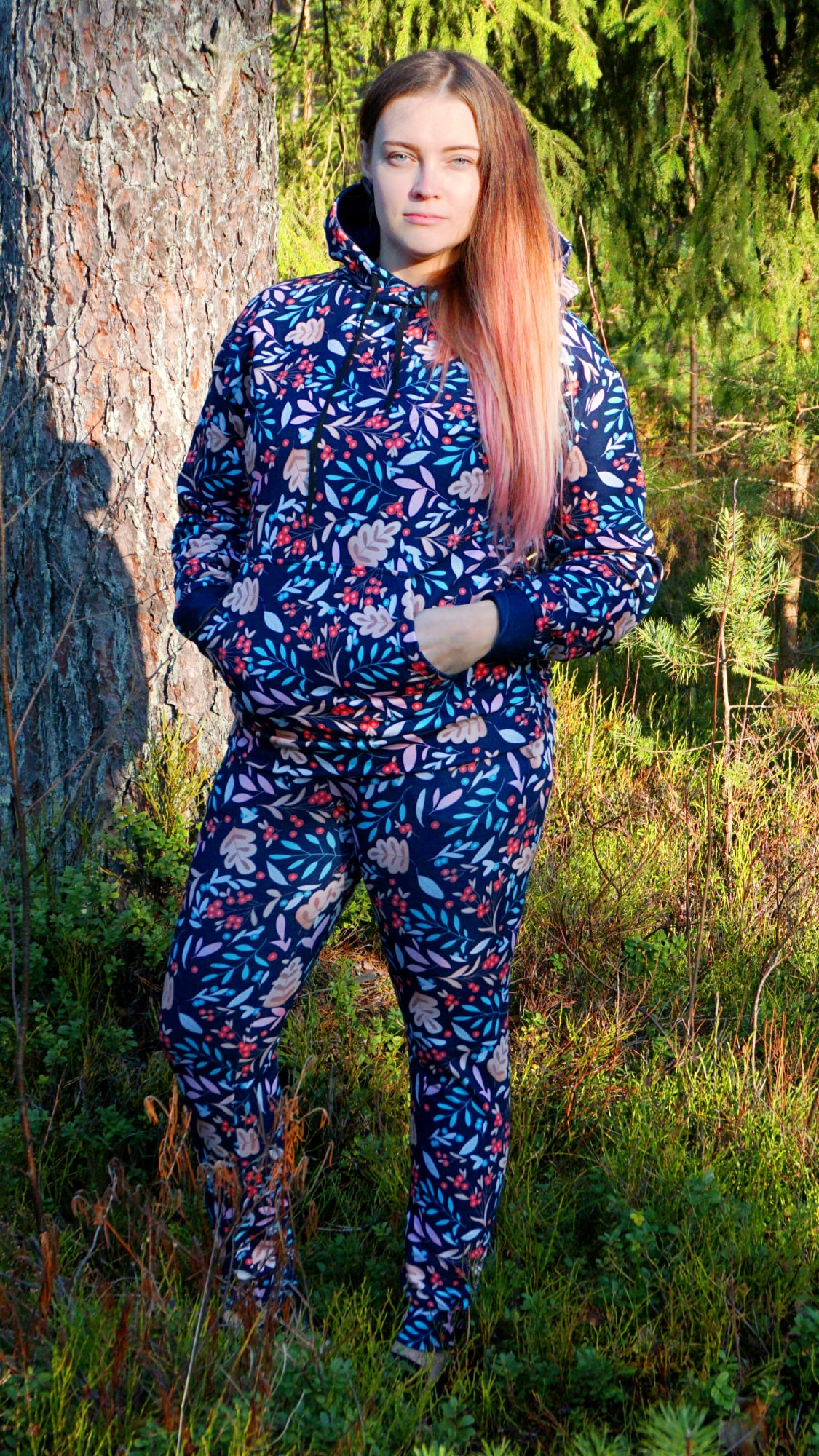 Kujuta ette, kuidas sügishõngulise mustriga riietes tunned end kui osa loodusest. Ja pole vahet kas sajab lund või lehti, seda universaalset kollektsiooni saab kanda igal ajal! See kollektsioon mis ühendab Eesti sügisese looduse ilu moega. Need on rohkem kui lihtsalt rõivad, need on kunstiteosed, mis kannab endas looduse ilu ja armastust moe vastu.