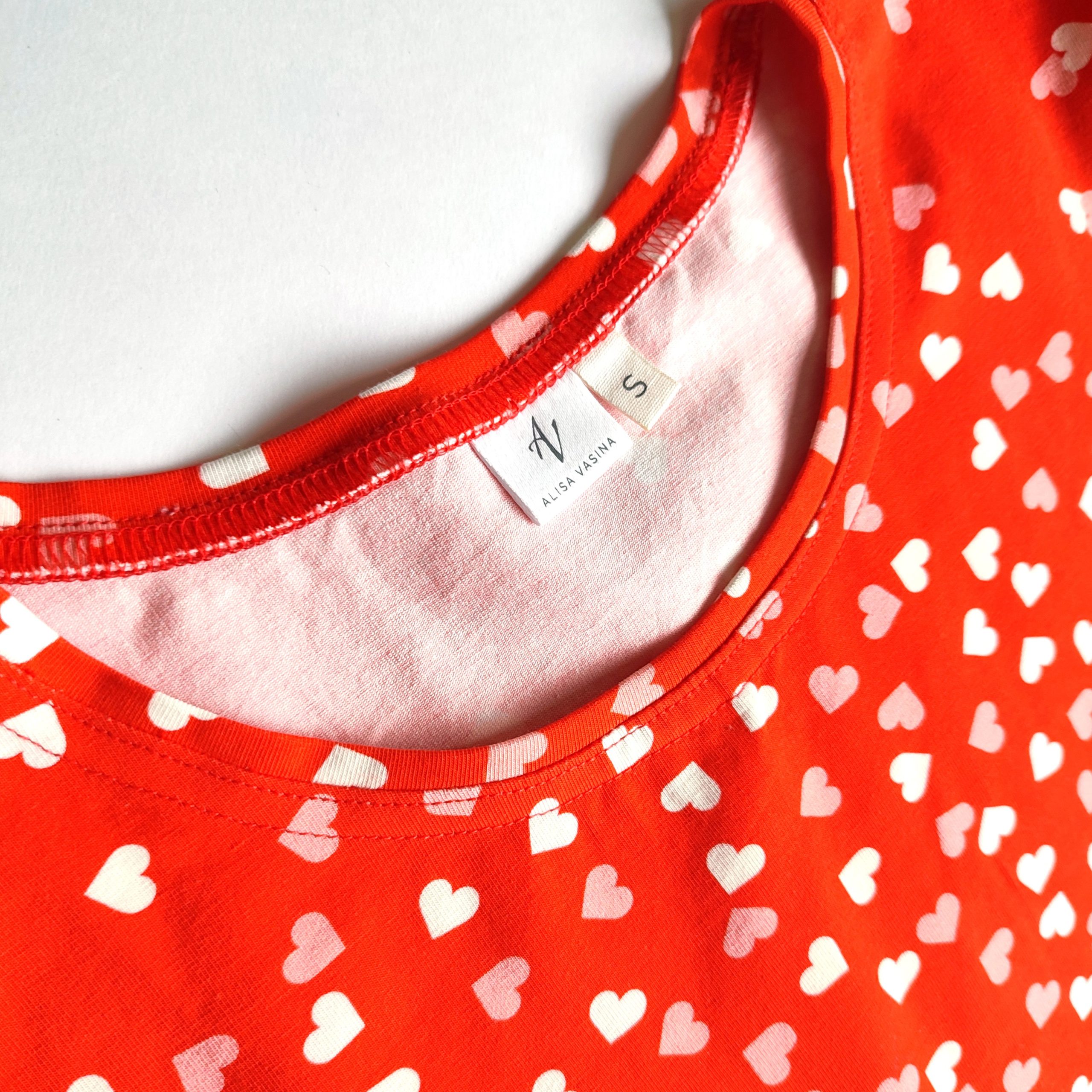 Eesti disain – A-lõikeline kleit südamed on disainitud ja õmmeldud Eestis.