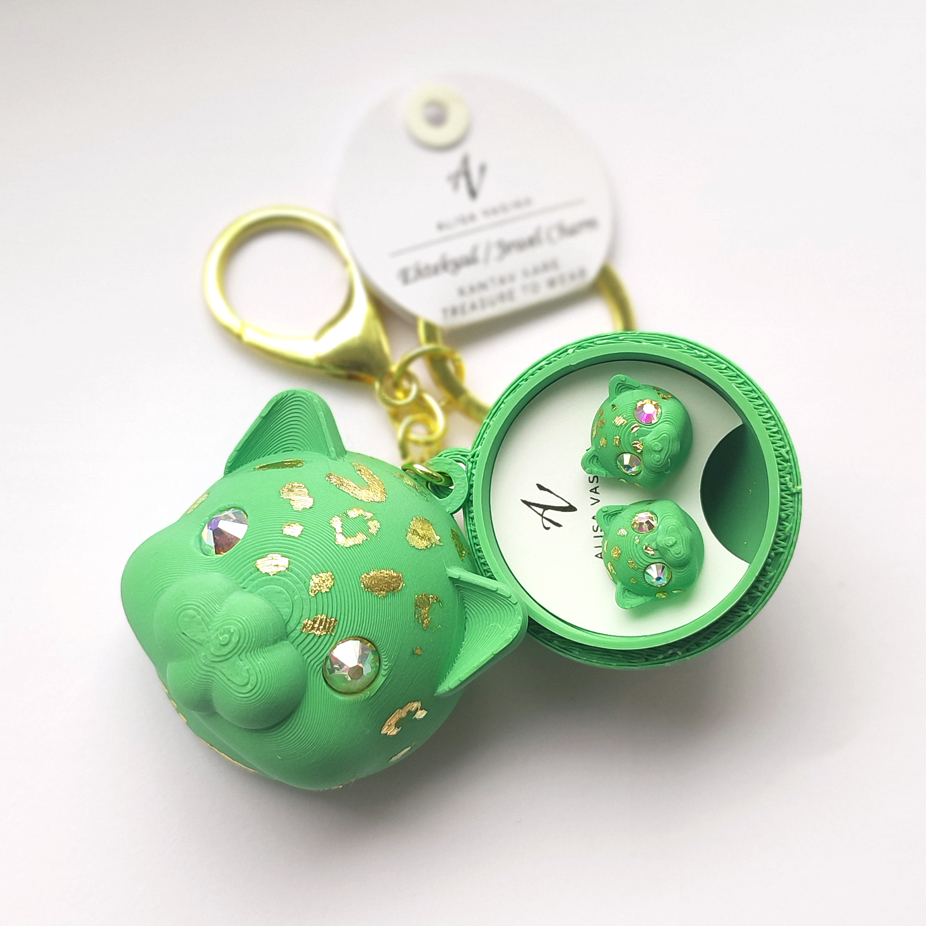Ehtekuul roheline panter toob endaga metsiku elegantsi ja rahuliku jõu. Roheline toon sümboliseerib tasakaalu ja looduse väge, samas kui panter kui loom kutsub üles julgusele ja sihikindlusele. See ehe on justkui väike totem, mis tuletab meelde, et sisemine tasakaal on tõeline tugevus.