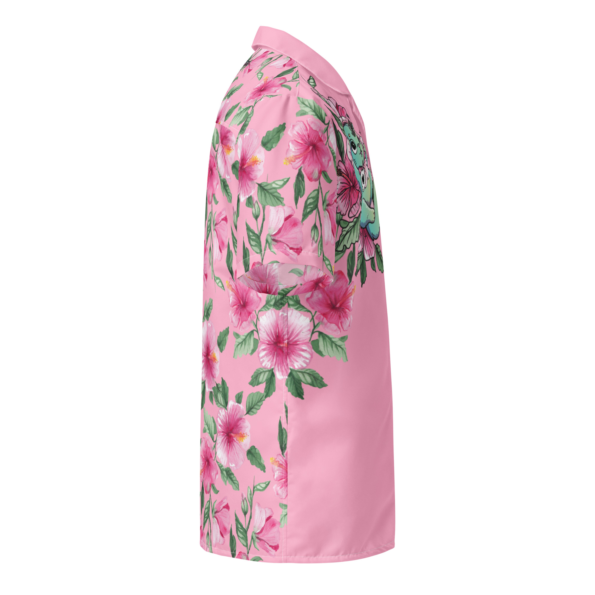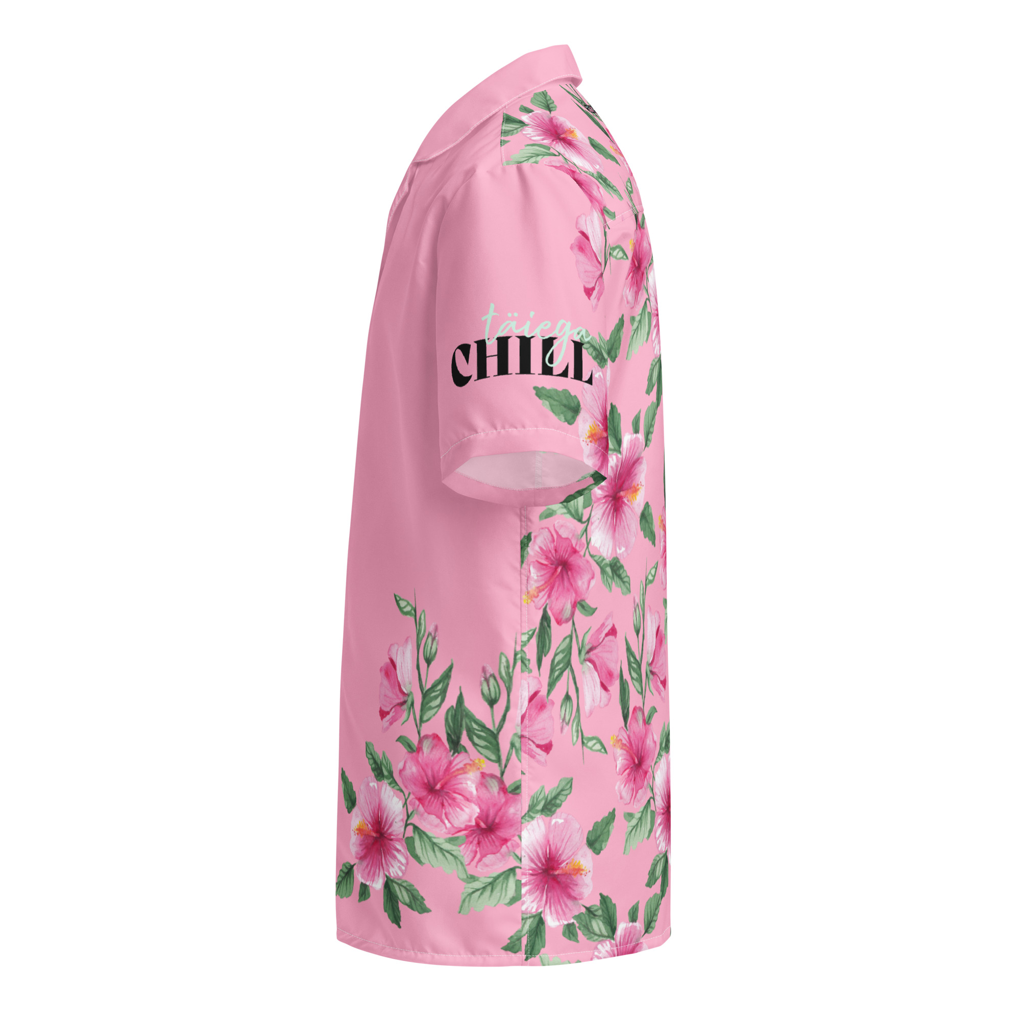 Lühikeste varrukatega nööpsärk Hibiskass on ideaalne kaaslane suviseks lõõgastumiseks – kerge, hingav ja täiega chill. Selle roosal põhjal õitsevad hibiskuse õied, särgi seljaosa ja varrukad loovad troopilise meeleolu, mis kutsub puhkusele. Rinnal ilutseb Hibiskass – kassi ja hibiskuse hübriid –, kes kehastab rahu, ilu ja suvist muretust. Varrukal kiri “Täiega CHILL” annab särgile mõnusa mängulise noodi.