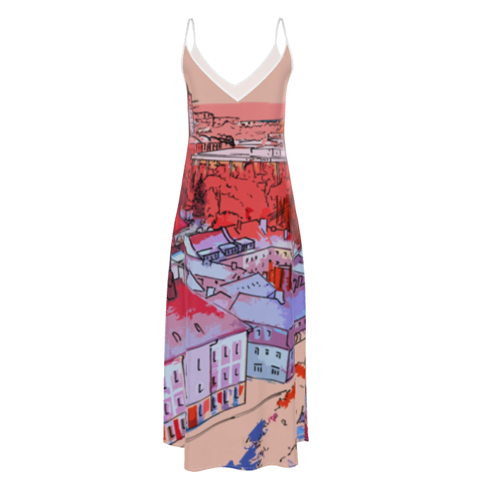 Kleit on valmistatud kvaliteetsest Euroopa Liidus trükitud siidist, mis tagab selle luksusliku ja õrna puudutuse. Kangas kaalub 85 g/m2, olles kerge ja mugav kandmiseks. Pikem lõige lisab kleidile elegantset voolavust ja graatsiat ning peened paelad annavad sellele sensuaalse puudutuse.