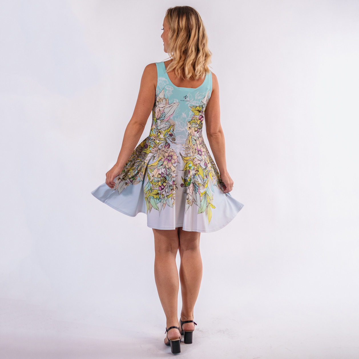 Skater kleidi kehasse istuv lõige ja alt laienev seelik pakuvad nii liikumisvabadust kui ka elegantset välimust. See on valmistatud pehmest ja elastsest kangast, mis hoiab naha kuivana ja pakub mugavust kogu päeva vältel.