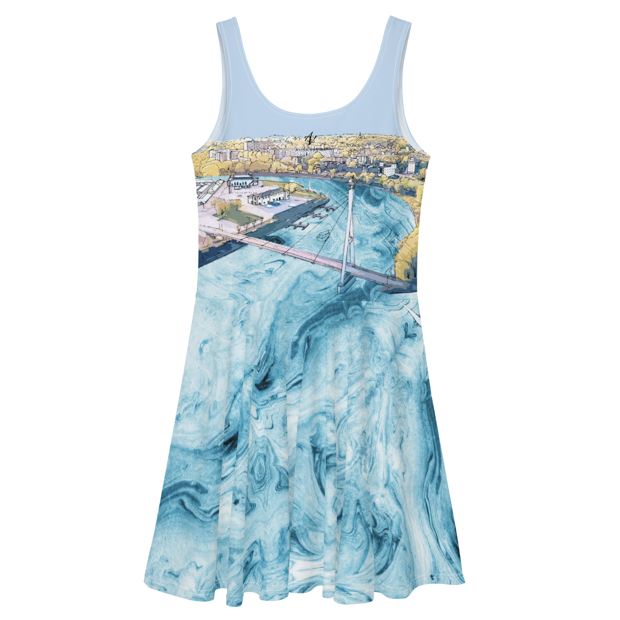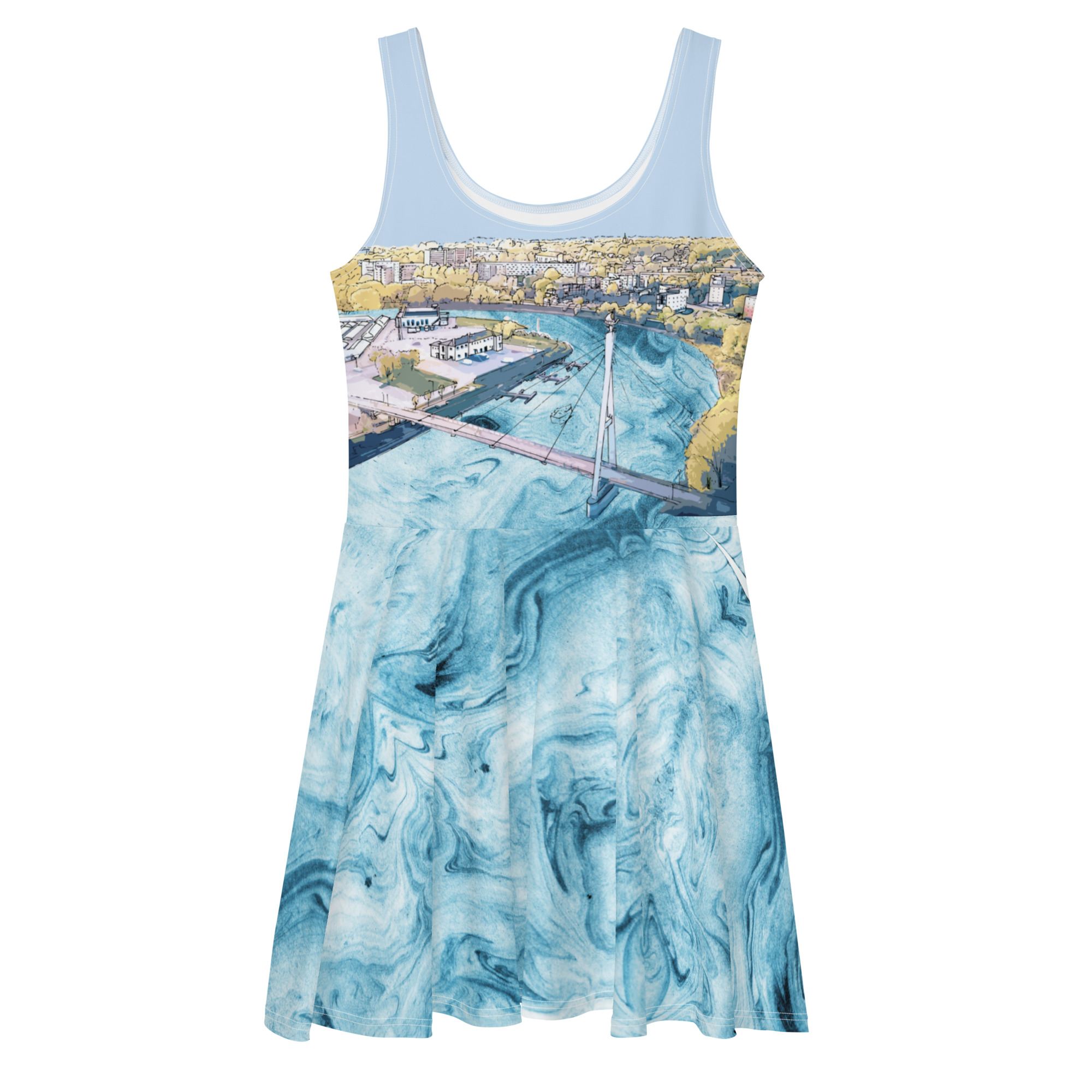 Skater kleit Ülejõe on inspireeritud Tartu Emajõest ja jõeäärsest linnaosast. Emajõgi lisab Tartule erilist võlu, pakkudes võimalusi jalutuskäikudeks mööda kallast või paadisõitudeks jõel. Jõe ääres asub Ülejõe linnaosa, mis on täis elavat kultuuri, kaunist arhitektuuri ja jõeäärseid alasid. See piirkond ühendab Tartu rikkaliku ajaloo ja kaasaegse eluviisi, luues unikaalse ja inspireeriva keskkonna. Skater kleit Ülejõe sobib suurepäraselt rannapäevadeks Emajõe rannas, paadisõiduks Emajõel või jalutuskäikudeks Emajõe promenaadil, tuues sinu stiilile jõeäärse linnaosa kaunist võlu. Kleidi esmaesitlus toimus Estonian Fashion Festivali Antoniuse moeetendusel.