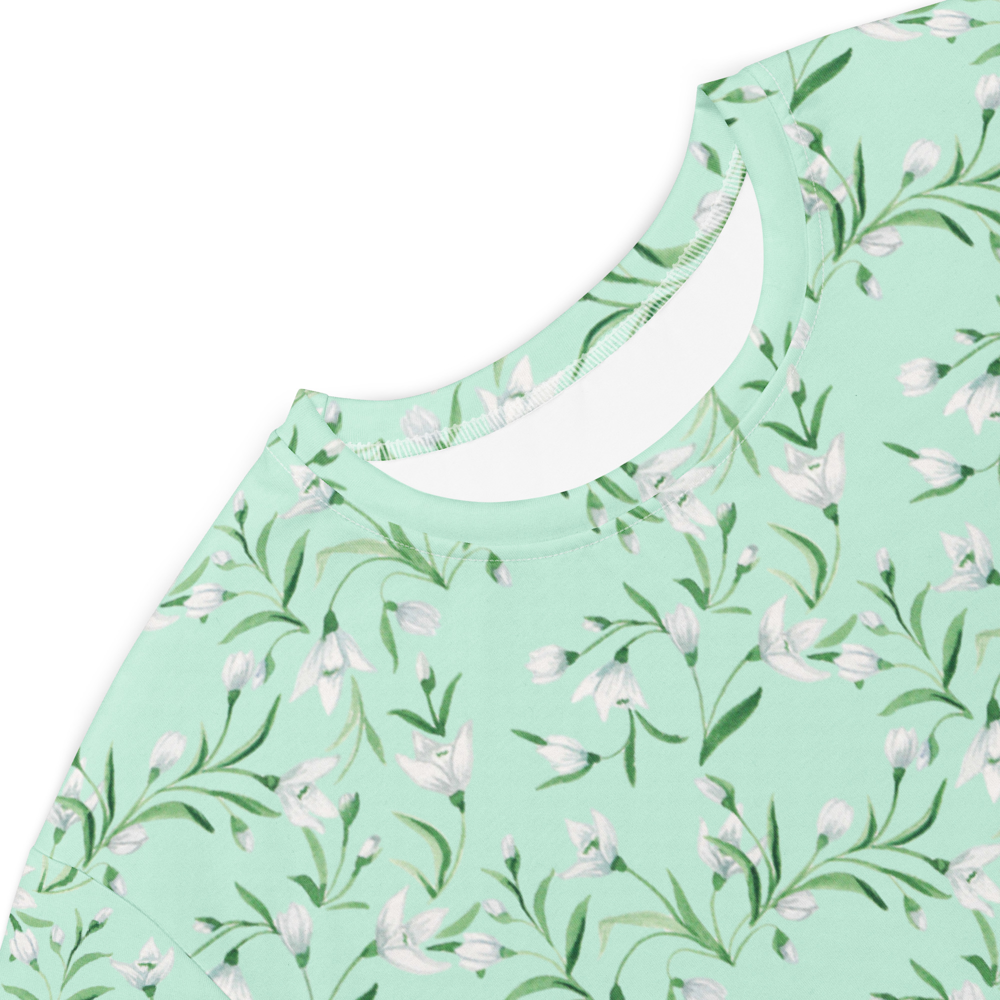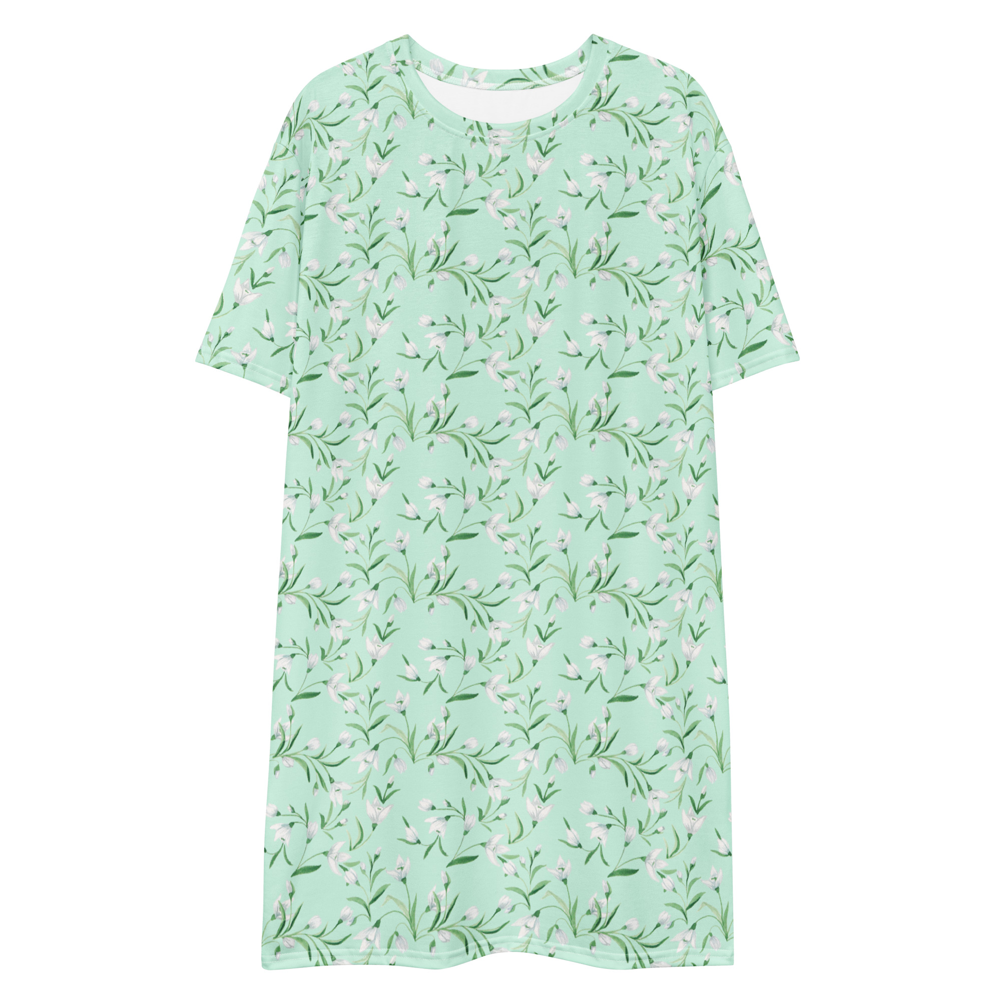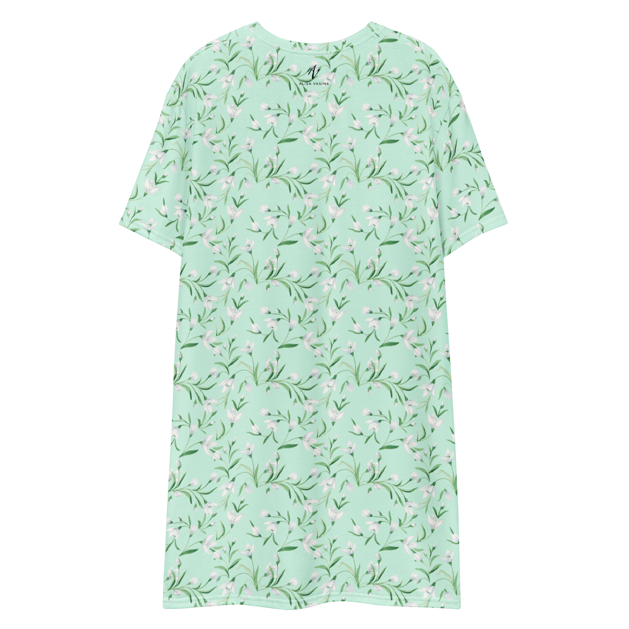 T-särk kleit lumikelluke on austusavaldus kevade esimestele õitele – lumikellukestele, mis sümboliseerivad uue alguse helgust ja haprust. Heleroheline taust loob rahuliku ja looduslähedase meeleolu, millel lumikellukesed justkui tärkavad, tuues endaga kaasa vaikse lootuse ja kevade värske õhu.