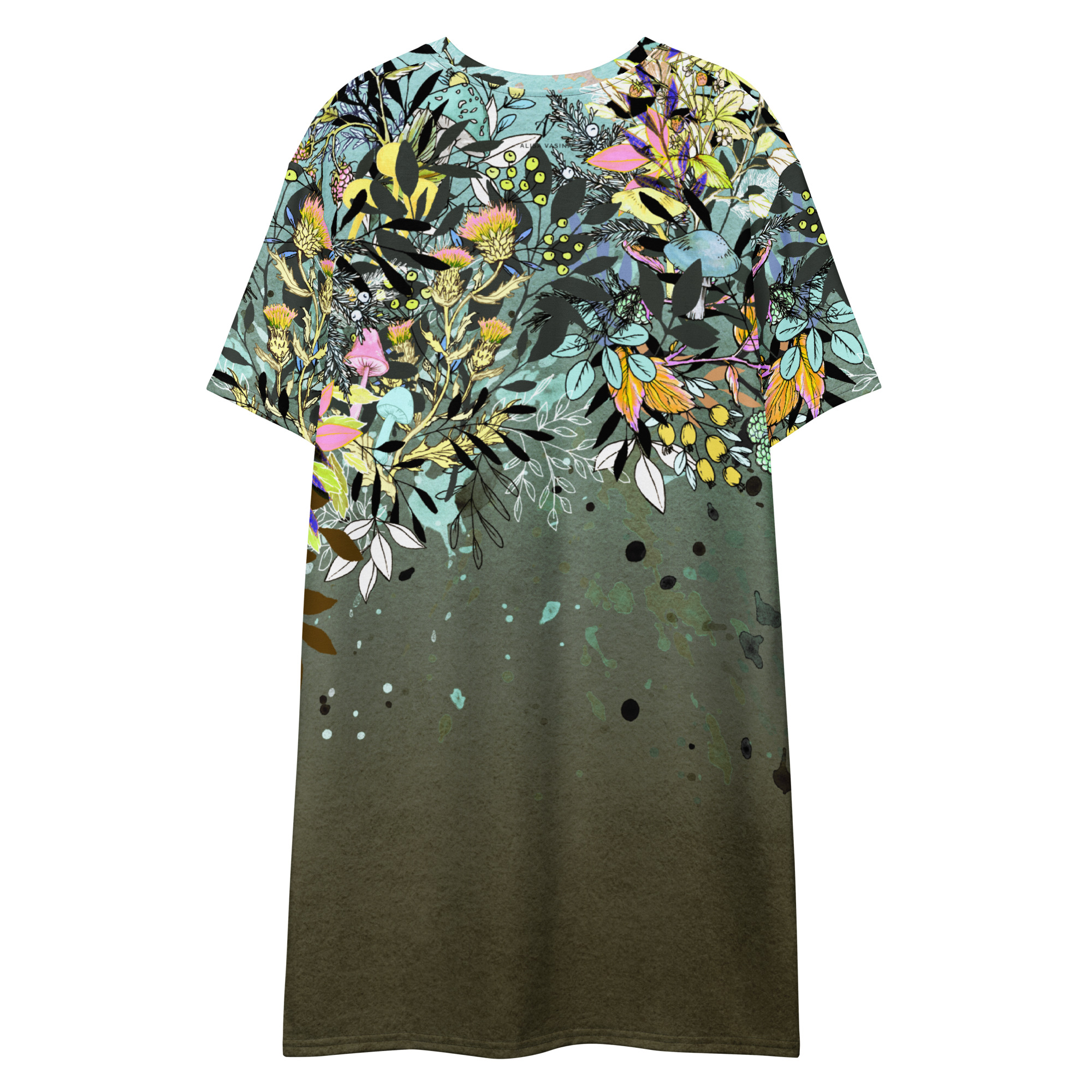 T-särk kleit on valmistatud mugavast kangast ning sellel on allapoole langev õlg, mis tagab lohvakama ja pingevaba välimuse. Iga küljelt graafikaga kaetud kleit on tõeline kantav kunstiteos. Selle kleidi disain on mõeldud igapäevaseks kandmiseks igas olukorras, olles samal ajal mugav ja stiilne valik.