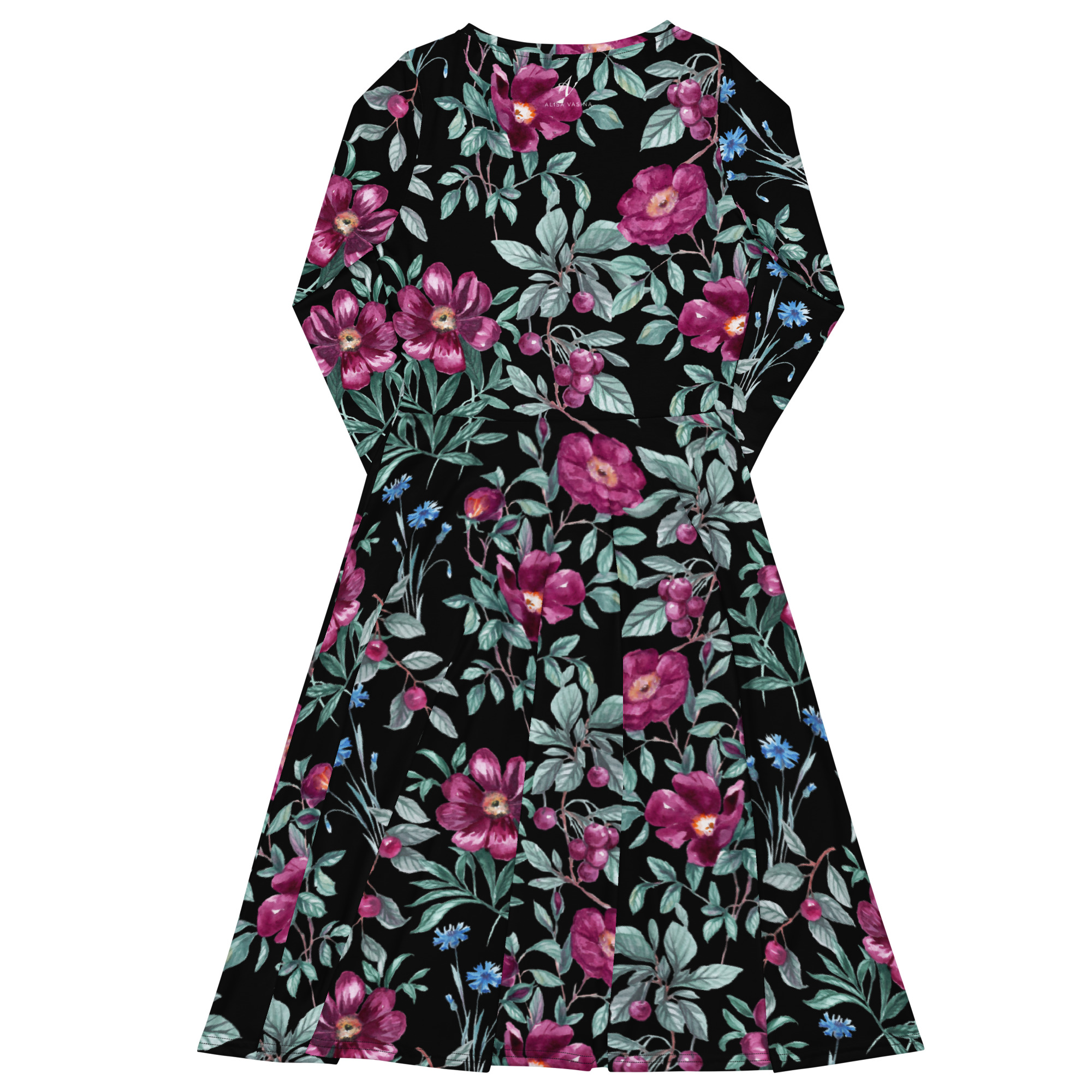 Kleit on kehasse istuv vöökohaga ja alt laieneva seelikuga, mis rõhutab kandja loomulikult kaunist siluetti. Kangas on valmistatud premium kvaliteetsest trikotaažist, mis koosneb 96% polüestrist ja 4% elastaanist, tagades kleidi mugavuse ja värvide vastupidavuse. Kleidi midi pikkus ja pikad varrukad muudavad selle sobivaks nii igapäevaseks kandmiseks kui ka pidulikeks sündmusteks.