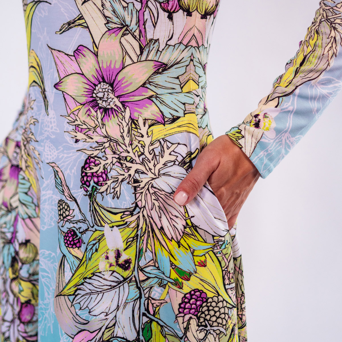 Eesti disain – Taskutega midi kleit Rahvuslik on disainitud Eestis.